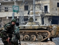 시리아 알레포 반군 주둔지 근처에서 정부군이 순찰을 하고 있다.