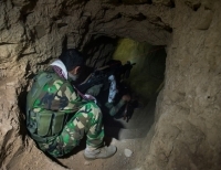 이라크 모술 북부 바쉬카(Bashiqa)지역에서 IS 지하디스트가 만든 터널을 통해 이동하려는 이라크 쿠르드 민병대 페쉬메르가.