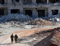 시리아 친정부 군인이 알레포의 서부 민얀(Minyan) 지역을 걸어가고 있다.
