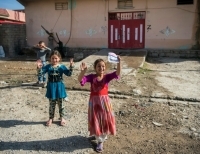 이라크 군이 모술의 동부지역인 아르바지야(Arbajiyah)를 지나자 소녀들이 집 밖에서 손을 흔들며 인사를 건네고 있다.