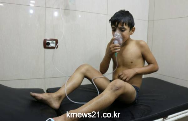 시리아 알레포, 호흡 곤란으로 병원 찾은 소년