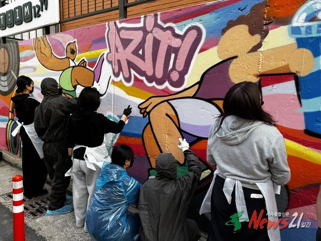 울산동구청소년방과후아카데미 청소년, 청소년복합문화공간 ‘T:IM 1219’ 벽화 꾸미기 프로젝트 참여