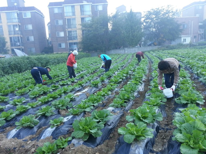 해마다 김장철이 되면 배추, 무 등 채소가격이 만만치 않아 겨울철 사랑의 김장에 쓰일 채소 확보에 어려움이 예상되어 작업에 참여한 모든 새마을지도자들은 배추 한 포기마다 정성을 들여 거름과 영양제를 투입했다.