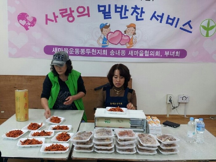 송내동 새마을부녀회에서는 한달에 한번 직접 장을 보고 요리하여 함께 나누는 밑반찬 서비스를 실시하고 있다.