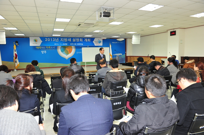 양주시는 25일 오후 2시 시청 대회의실에서 관내 기업체 임원 및 직원, 법무사, 세무사, 시민 등 100여명을 대상으로 ‘2013년 지방세 설명회’를 개최했다.