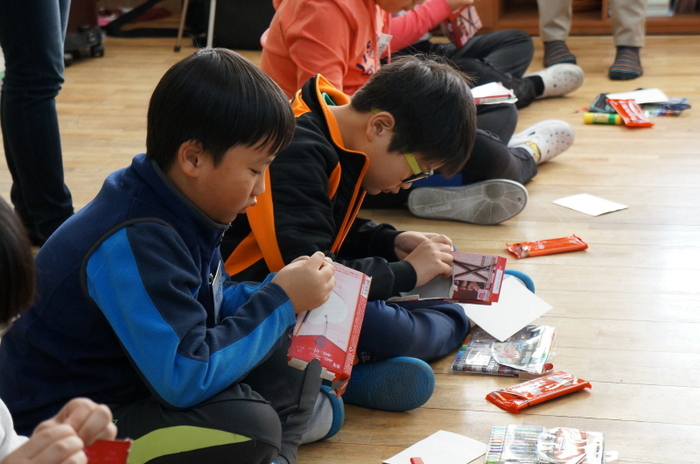 이 프로그램은 학생들의 흥미를 자극할 수 있는 다양하고 신기한 시각적 제시 기법과 직접 경험할 수 있는 실험을 통해 종이의 역사, 종류, 용도에 대해 알아보는 활동을 하였다. 또한 과자종이 상자가 몇 개의 층으로 이루어져 있는지 분리해 보는 활동, 맛있는 과자 박스는 어떻게 만들어지는지를 학생들의 관점에서 제시하여 시종일관 학생들의 감탄을 자아내었다.