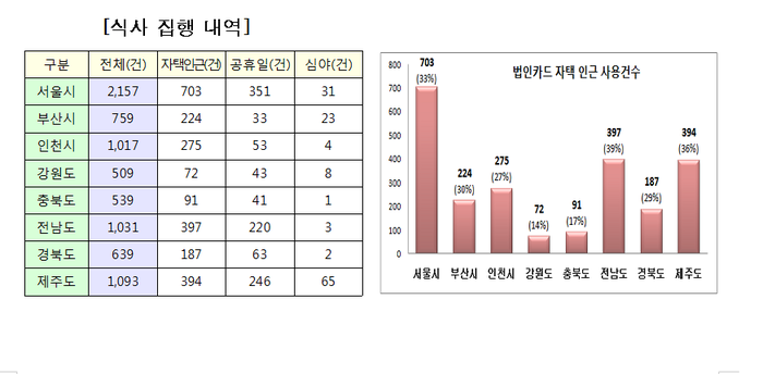 국민권익위원회 7일 행동강령 이행실태 점검결과 지방의회의원 상당수가 업무추진비를 자신의 자택 인근에서 의정활동외 용도로 사용하거나 사적인 용도로 사용한 것이 드러났다고 밝혔다.