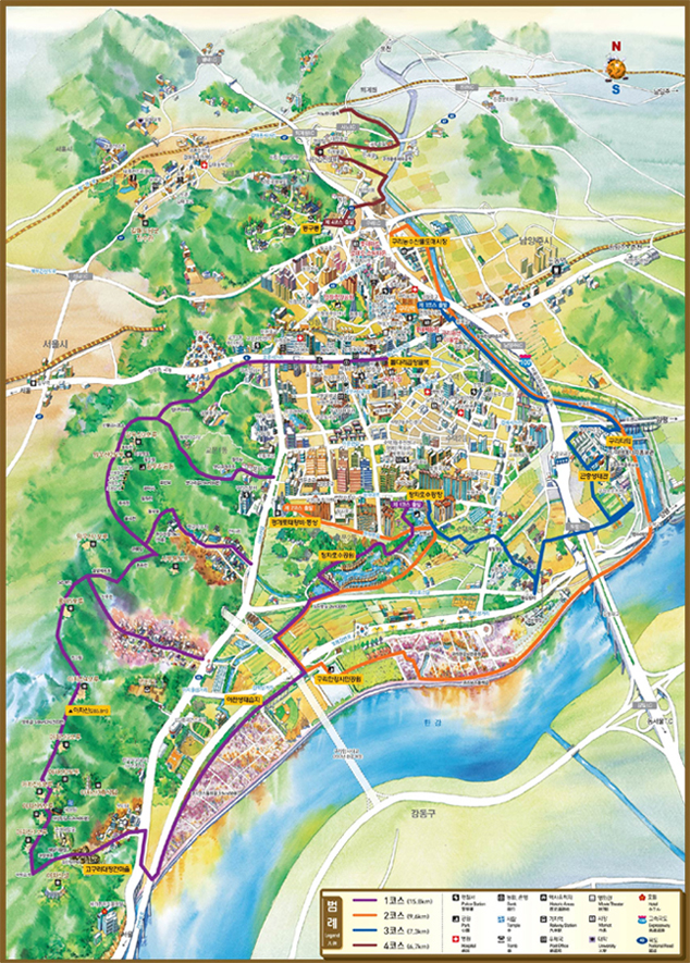 <!--[if !vml]-->Ⅲ코스는 자연과 사람이 조화된 구리시의 현재 모습과 구리시의 옛 모습을 동시에 느낄 수 있는 코스이다.