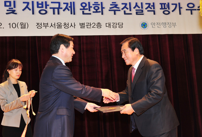 양주시는 안전행정부가 실시한 지방규제완화 추진실적 평가에서 규제개선 노력도 및 단체장 관심도 등의 실적을 인정받아 우수기관으로 선정, 10일 서울시 종로구 소재 정부서울청사에서 지방규제완화 대통령 표창을 수상했다.