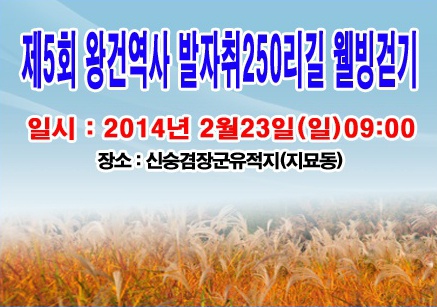 그동안 ‘걷기 좋은 길’ 개발을 위해 힘써온 ‘영남의 길과 문화’(시민단체)와 대구시는 2월 23일부터 3월 23일까지 매주 일요일 5주간 연속으로 ‘왕건 역사 발자취길 걷기대회’를 개최한다.