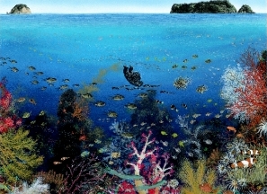 제주의 자연을 다룬 첫 번째 섹션에서는 방송인 허수경(글)과 김재홍(그림)이 함께 호흡을 맞춰 작업한 너, 제주도에 있니?를 볼 수 있다. 두 작가는 2년간 한라산과 거문오름 용암동굴계 등 ‘반드시 가봐야 할 제주 14경’을 직접 선정하고 답사해 작품을 완성했다.