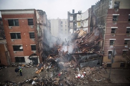 지난12일 오전(현지시간), 뉴욕 맨해튼 시내에 위치한 아파트 건물 2채에서 커다란 폭발음과 함께 화염과 연기가 치솟으며 순식간에 붕괴됐다.