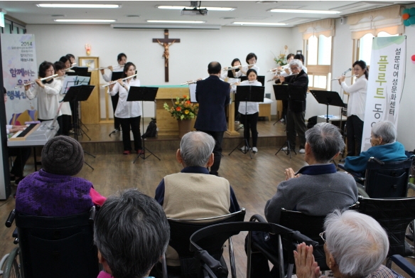 제주특별자치도설문대여성문화센터(소장 고정렬) 소속 플루트동아리(회장 현경림)는 2014. 3.31 (월) 사회복지법인 제주사라의 집을 방문하여 찾아가는 재능나눔 "함께하는 우리는 행복합니다" 플루트 공연을 실시하였다.