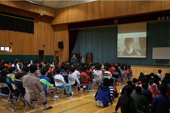 금부초등학교(교장 천성만) 강당에서 열린 인문학 강의가 학생들의 역사에 대한 편견을 허물었다.