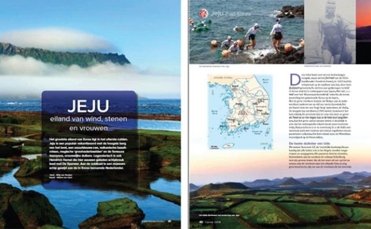 이 잡지에서 제주는 6페이지 분량으로 다루어지고 있는데, 바람과 돌과 여자의 섬인 제주도가 매우 인기 있는 휴양지로 소개되고 있으며 한국에서 가장 큰 섬인 제주도가 역시 한국에서 가장 높은 산 한라산과 푸른 바다, 현무암과 돌하르방의 섬으로 묘사되고 있다. 또한 유네스코가 지정한 세계자연유산 성산일출봉과 함께 제주 섬문화의 상징인 해녀를 비롯하여 한국을 서구에 소개한 네덜란드인 하멜과 관련된 볼거리도 다루고 있다.
