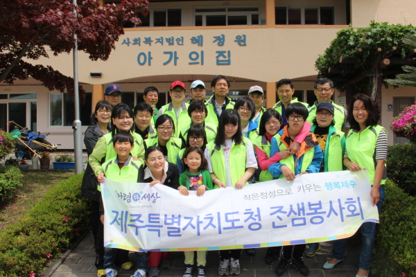 제주도청 존샘봉사회(회장 강은숙)는 2014. 5.10(토) 아가의 집(조천읍 함덕리 소재)을 방문하여 실내 환경정비 및 화단정비, 풀베기 등 실외 환경정비 노력봉사 활동을 실시하였다.