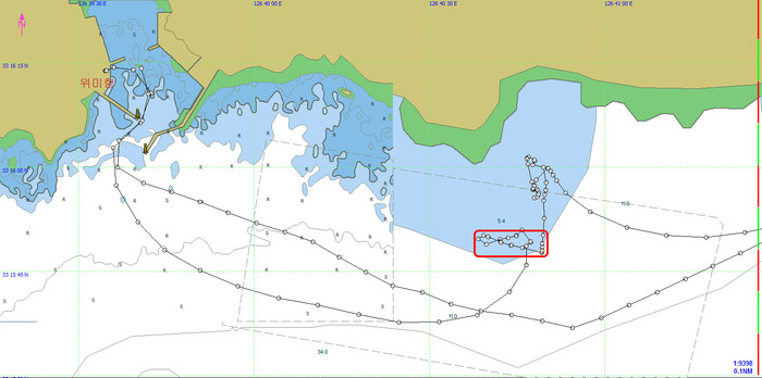 ▲ 갈래곰보 서식지(위미연안의 수심 12m 해저, 붉은 색 사각형 안) © 제주특별자치도 제공 | |