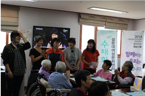 제주특별자치도설문대여성문화센터 소속 수채화동아리는 찾아가는 재능나눔 일환으로 2014. 6. 9(월) 나눔요양원(제주시 도평동 소재)을 방문하여 "어르신들과 물감 불기를 이용한 미술 프로그램"을 실시하였다.