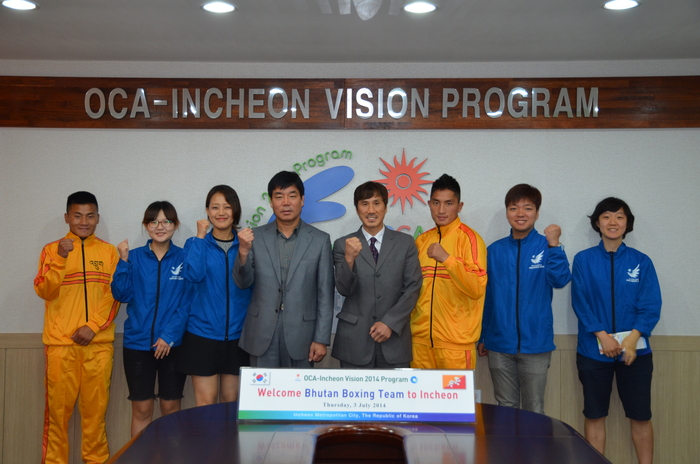 아시아 스포츠 균형발전과 성공적인 인천AG 개최를 위해 'OCA-인천 비전 2014 프로그램'을 운영하고 있는 인천시는 7월 3일 인천 전지훈련을 위해 입국한 부탄 복싱 선수단을 환영하는 행사를 진행했다.
