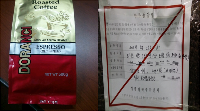 | ▲ 무표시 상태로 공급한 볶음커피 ©사진 및 자료제공: 식품의약품안전처 | |