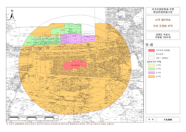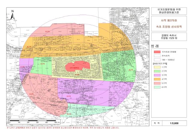 또 7번국도 이남지역은 속초시 도시계획 조례 및 관련법령을 적용하도록 되어 있어, 그간 주민들의 건축물 신축 시 국가지정문화재 현상변경허가 신청으로 인한 인허가 절차가 간소해 진 것이 특징이다.