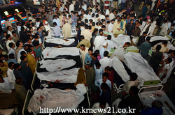 2014년 11월 2일, 파키스탄의 와가(Wagah) 인근에서 발생한 자살폭탄테러 희생자들의 친척들이 희생자들 주변으로 모여있다.