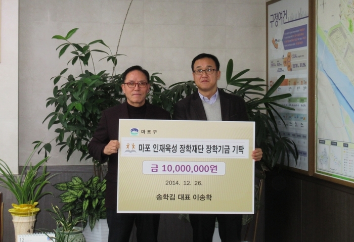 한편, 이날 송학김은 이번 성금 외에도 마포인재육성장학재단에 장학금 1,000만 원을 기탁해 지역사회 복지증진에 앞장서게 됐다.