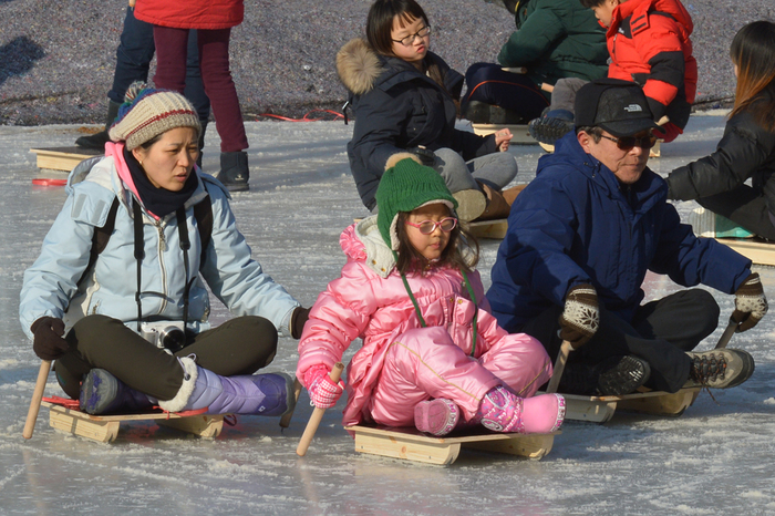 주말에 가족과 함께 소요산을 찾은 나들이객은 무료로 운영하는 얼음썰매장을 반겼다.