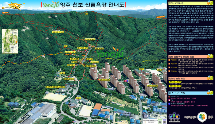 ‘양주 천보 산림욕장’ 및 ‘재미있는 양주 숲체험 운영’에 대한 기타 자세한 사항은 산림축산과 산림휴양팀(031-8082-6221~2)으로 문의하면 된다.