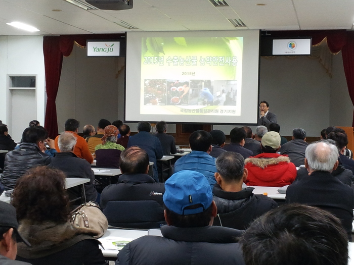 양주시농업기술센터(소장 전창석)는 수출배 농업인 80여명이 참석한 가운데 고품질 안전농산물 생산관리 및 수출배 안전성 확보를 위한 ‘2015년 농산물우수관리제도(GAP) 및 수출농업인 교육’을 실시했다고 2일 밝혔다.