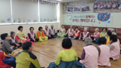 제주특별자치도설문대여성문화센터 소속 민요동아리(회장 조매정)는 2015. 2.13 (금) 제주시보건소 노형지소 치매주간보호센터에서 찾아가는 재능나눔 "함께하는 우리는 행복합니다" 민요 공연을 실시하였다.