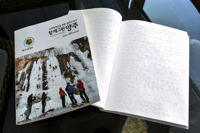 양주시가 매월 발행하는 시정소식지 ‘함께그린양주’가 점자책으로도 발간돼 화제다.