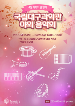 국립대구과학관은 오는 25일(토)~26일(일) 양일간 4월 과학의 달을 맞아 온 가족이 즐길 수 있는 무료 ‘야외 음악회’를 개최해 눈길을 끈다.