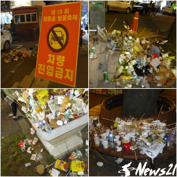 충북 제천의 대표적 축제 가운데 하나인 청풍호 벚꽃축제가 온갖 불법과 난장판으로 막을 내린 가운데 축제 개막식에서 이근규 제천시장이 내년부터는 야시장을 열지 않겠다고 밝혀 벚꽃 축제가 새로운 전기를 맞을 것으로 예상되고 있다.