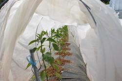 막 덮기 재배를 위해서는 먼저 두둑을 만든 후 관수시설을 미리 설치하고, 모종을 아주심기 한다. 이어 터널을 만들고 막 덮기용 부직포로 피복한다. 6월 상순경 부직포는 제거하고 지주를 설치해 이후로는 관행과 같이 관리하면 된다.