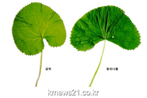 ● 곰취(식용)와 동의나물(독초)
