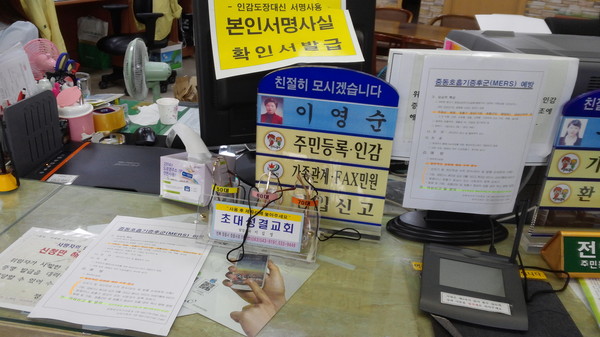 초산동주민센터가 중동호흡기 증후군(MERS) 예방활동에 총력을 쏟고 있다. 주민센터는 예방수칙 안내문을 작성해 직원 개인별로 컴퓨터 모니터 전면에 부착하여 자치센터를 방문하는 주민들이 자연스럽게 읽어 볼 수 있도록 하고 있다. 또한 통장들과 경로당 및 노인요양시설에 메르스 안내문을 제작해 배부하는 한편 경로당 회장 등 기반조직원과의 비상연락망을 정비하고 고열 등 의심환자 발생이 있을시 신속하게 연락할 것을 당부하고 있다.
