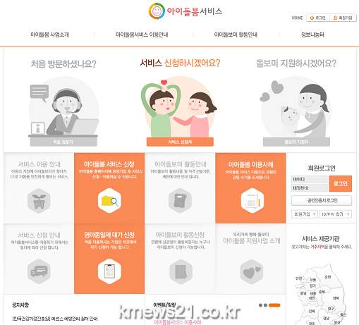 ▲ `아이돌봄서비스 홈페이지` 이미지여성가족부는 메르스 확진 판정으로 가족을 돌볼 수 없어 돌봄 공백이 발생한 경우 양육돌봄, 노인돌봄, 가사돌봄, 병원돌봄을 지원한다. 비용은 무료이며 가구당 90시간까지 지원이 가능하고 서비스를 이용하고자 하는 분은 02-3479-7600(한국건강가정진흥원)으로 연락하면 된다. 다만, 아이돌보미의 안전이 확보된 경우에만 가능하다.