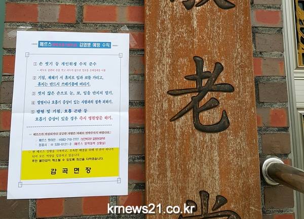 ▲ 정읍-감곡면-메르스예방수칙홍보총력면은 △평상 시 비누를 이용해 철저한 손 씻기 △ 기침이나 재채기를 하는 경우 일회용 티슈를 사용해 입을 가리고, 티슈가 없을 때는 소매 위쪽으로 가리고 하기 △메르스 환자와의 접촉피하기 △사람이 많이 모이는 곳은 가급적 피하고 부득이하게 방문할 경우 일반 마스크 착용하기 △ 발열, 기침 등의 증상이 있을 시 일반마스크 착용하기 △ 메르스 의심될 시 지체없이 보건소로 신고하기 등의 예방수칙 준수 안내문을 자체 제작해 경로당 및 다중집합장소에 게첨하고 노인사회활동 지원사업 직무교육 시 예방수칙을 집중홍보했다. 또 지역 내 경로당 47개소를 이달 말일까지 잠정 폐쇄 조치하고, 각종 행사를 무기한 연기했다. 특히 “메리스 자가격리 1:1집중 관리에 최선을 다하고 있다.”고 강조했다.