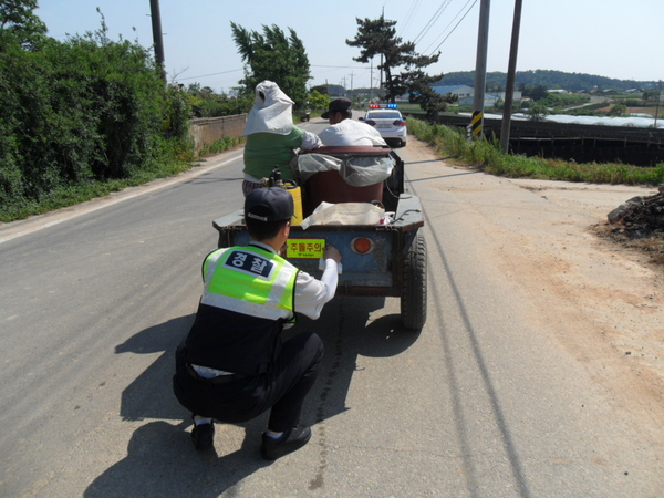 감곡파출소(소장 김용인)에서는 본격적인 모내기철을 맞이하여 트랙터, 경운기 등 농기계의 이동량이 많아지고 사고 위험성 또한 증가하고 있어 이에 대한 대응책 마련에 총력을 기울이고 있다.먼저 문안순찰을 통하여 각 마을을 방문 시 농기계 사고에 대한 사례별 예방법과 함께 교통법규를 준수토록 홍보하는 한편 사용중인 경운기 등 농기계 후면에 “추돌주의” 야광 반사판을 부착하여 시인성을 확보하고 운전자에 대한 주의를 환기시킴으로써 교통사고예방에 힘쓰고 있다.