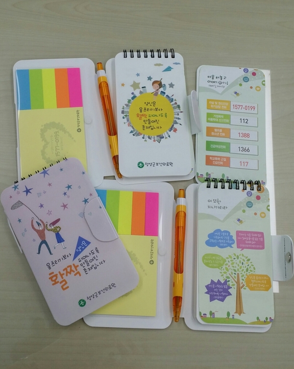 이 수첩에는 ‘당신은 움츠리기보다 활짝 피어나도록 만들어진 존재입니다’라는 문구와 함께 청소년기 우울증, 마음진단 해보기, 스트레스 해소하기 등 우울증 예방을 위한 내용이 담겨있다.