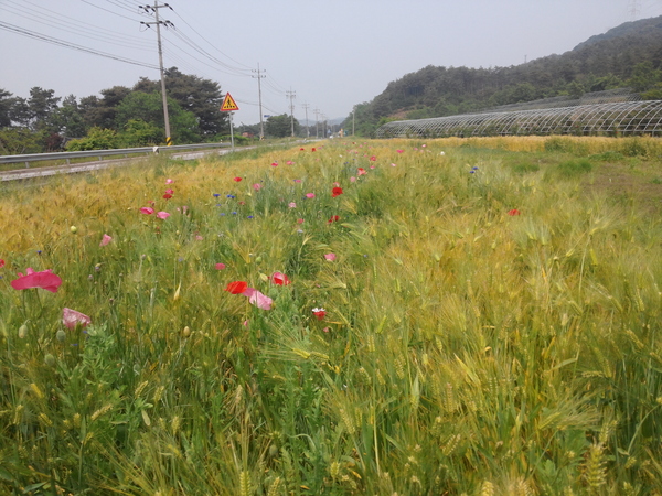 1000㎡ 공한지에 조성된 황금물결의 보리밭은 인근 장미터널의 만개한 장미꽃과 더불어 아름다운 조화를 이루며 지나는 관광객들과 주민들에게 휴식 공간으로 각광 받아 왔다.