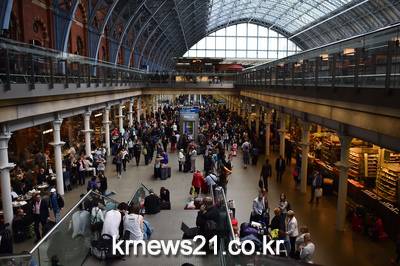 ▲ 영국과 프랑스를 잇는 고속철도 파업으로 영국 세인트 판크라스 역에서 승객들이 곤혹을 치르고 있다. ⓒAFP영국 런던의 세인트 판크라스 역에서 영국과 프랑스를 잇는 유로스타 고속철도의 노동자 파업으로 인해 시민들이 곤혹을 치르고 있다.