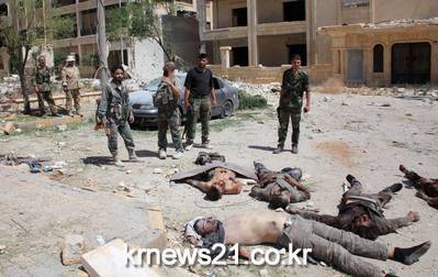 ▲ 시리아 북부에서 정부군과 IS의 충돌로 숨진 이슬람국가 대원 모습이다. ⓒAFP시리아 북부 알레포에서 이슬람국가 IS와 시리아 정부군의 충돌로 숨진 이슬람국가 대원들의 모습이다.