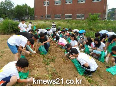 김포서초등학교 학생 90명은 7월 2일 고촌읍 태리에 위치한 풍년텃밭에서 텃밭교사들의 지도하에 옥수수, 토마토, 땅콩 등 텃밭에 심겨져 있는 작물들에 대해 공부하고 감자, 가지 등의 농작물을 직접수확 한 후에 밭에서 캔 감자를 삶아 먹는 즐거운 시간을 가졌다.