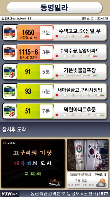 구리시(시장 박영순)는 10일부터 직행좌석버스 빈자리 정보를 버스정류장에 설치된 버스정보 안내 전광판을 통해 제공한다.
