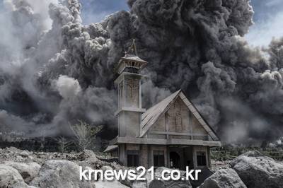 시나붕 화산은 2013년부터 간헐적인 활동을 재개하고 있으며 10,000명 이상의 마을 주민이 대피했다. AFP PHOTO / Sutanta ADITYA