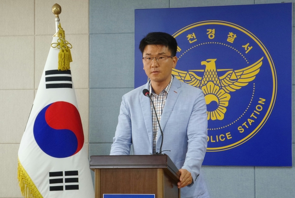 ▲ 3일 오전 제천경찰서 소회의실에서 수사과장이 기자회견을 열고 있다.경찰에 따르면 유씨 등은 2007년부터 1톤 탑차를 개조한 트럭에 주유기와 기름탱크를 설치한 불법 개조차량을 이용해 관광버스와 덤프트럭에 등유를 주유하는 수법으로 8년동안 2만6500여회에 걸쳐 300억원 상당의 부당이득을 취했다.