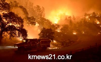 ▲ 미국 캘리포니아 클리어레이크 인근서 산불로 현장에 소방차가 진입하고 있다. ⓒAFP미국 캘리포니아 클리어레이크 인근에서 산불로 인해 소방차가 현장에 진입하고 있다.