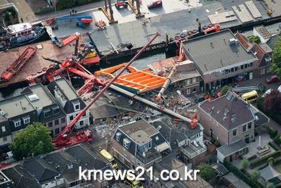 네덜란드 서부 알펜 안 덴 리진에서 2대의 크레인이 주택가로 추락해 20여명이 부상을 입었다.
